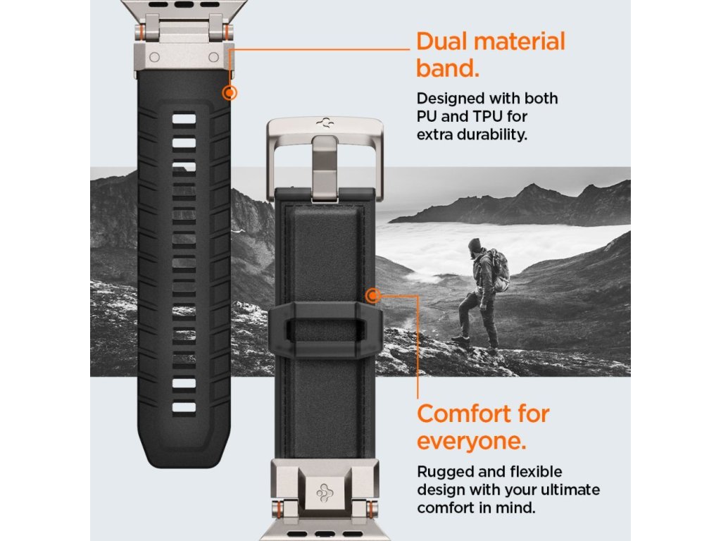 Řemínek pro Apple Watch 44mm / 45mm / 46mm / 49mm - Spigen, Durapro Armor PU Black