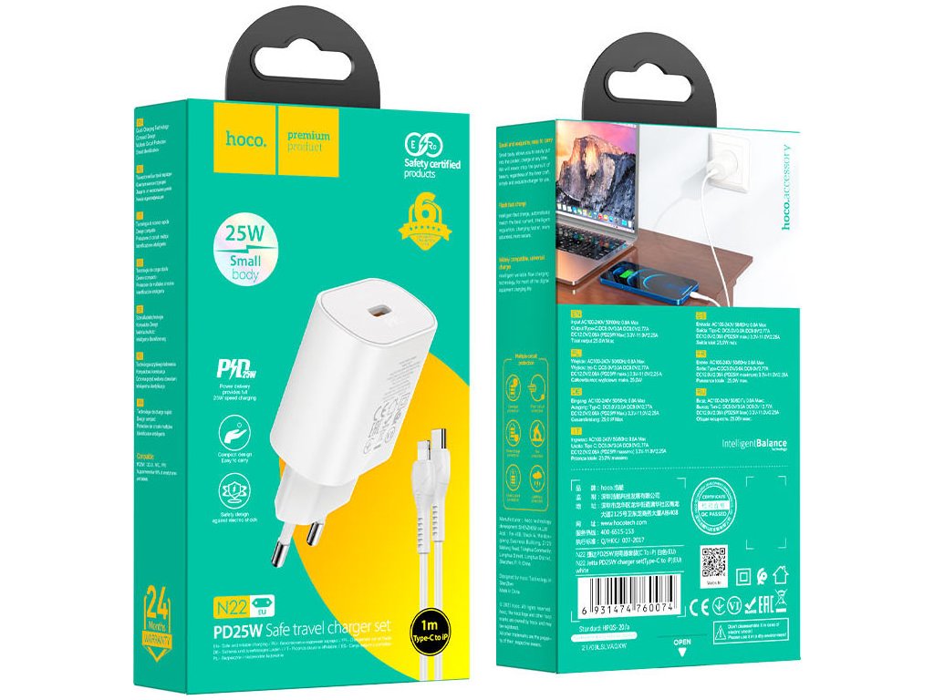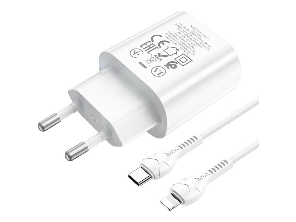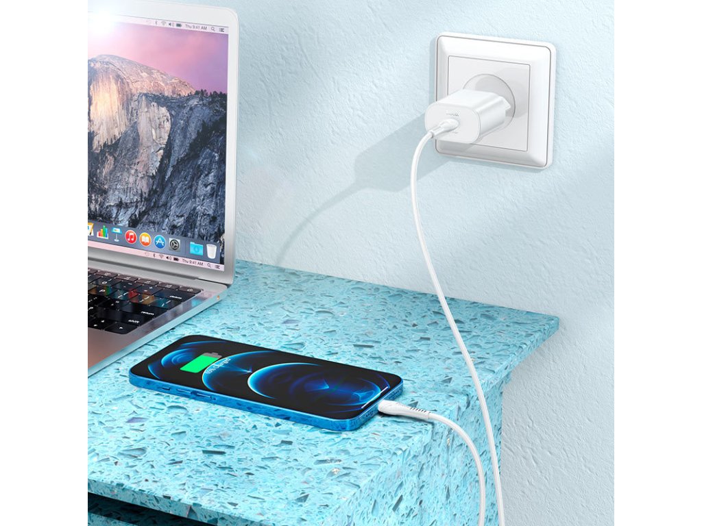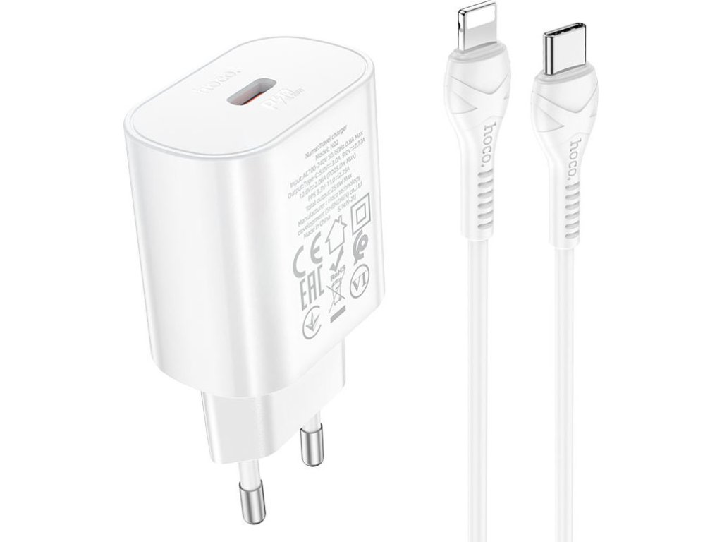 Rychlá nabíječka do sítě pro iPhone a iPad Hoco N22 podporuje funkci Power Delivery pro bleskurychlé dobíjení Apple produktů, rychlé nabíjení Quick Charge 3.0 a součástí je také nabíjecí Lightning kabel.