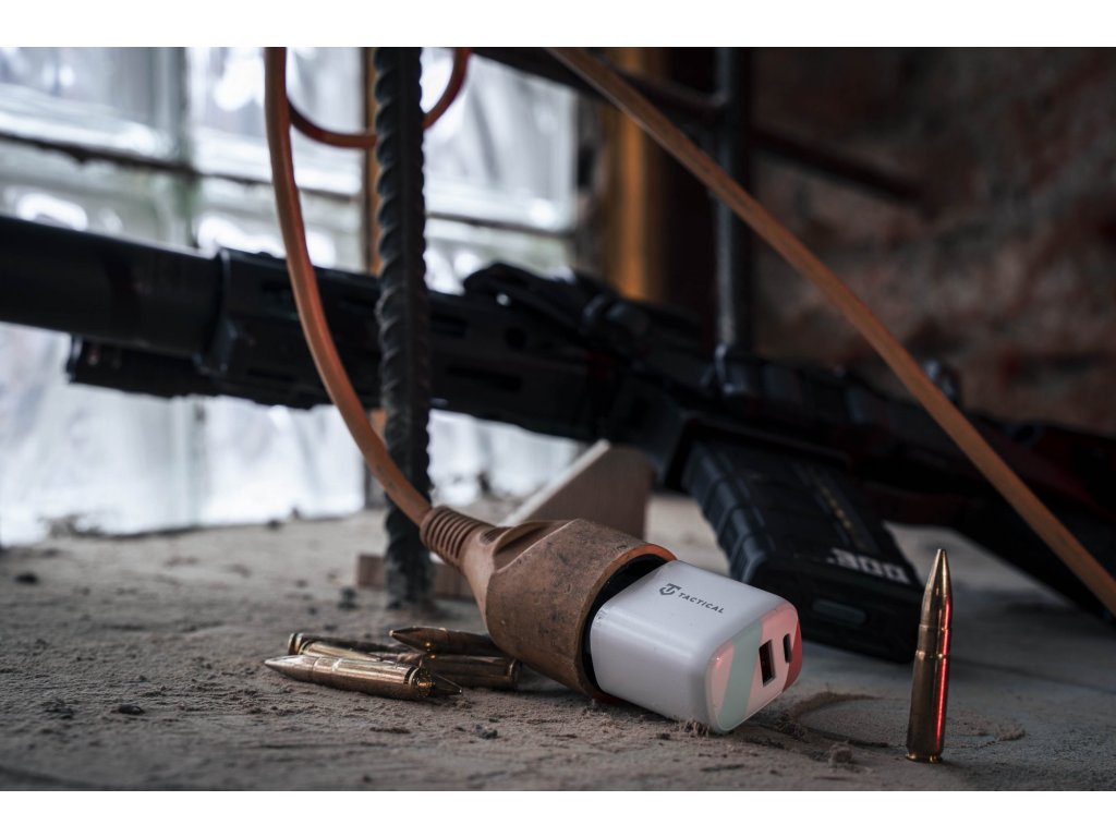 Cestovní nabíječka do sítě Tactical Base Plug Dual s minimalistickým designem, výkonem až 20W a pokročilým systémem PD/QC3.0 pro rychlé a bezpečné dobíjení. Vše produkováno jedním USB-C a jedním, USB-A portem.