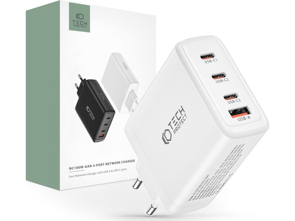 Rychlá nabíječka do sítě - Tech-Protect, NC100W PD100W/QC3.0 White