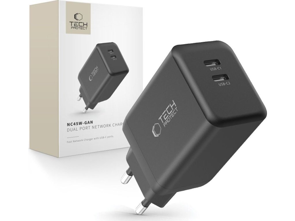 Rychlá nabíječka do sítě - Tech-Protect, NC45W-GAN PD45W Black