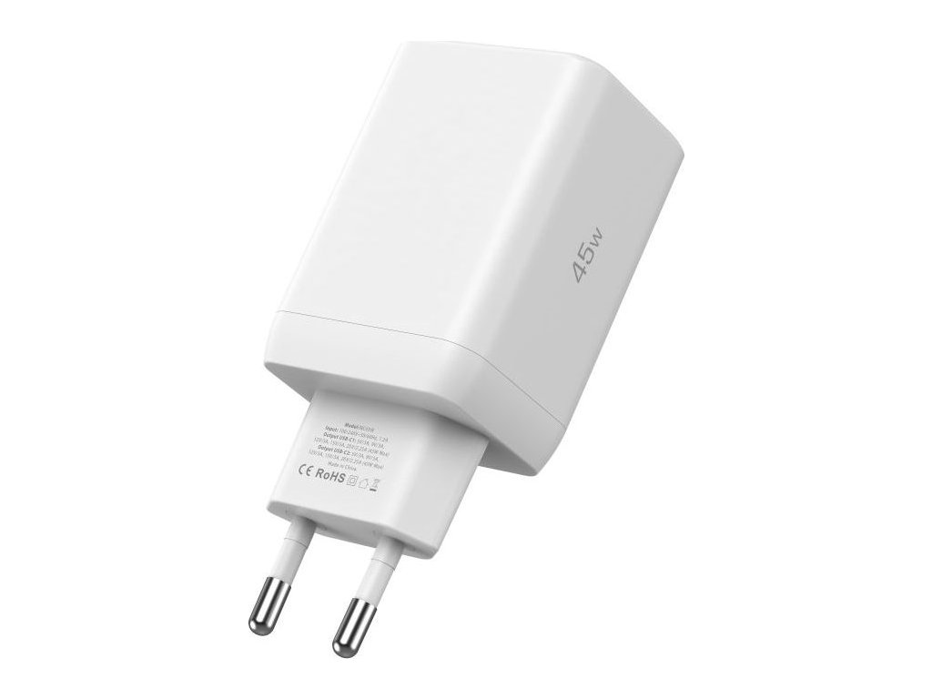 Rychlá nabíječka do sítě - Tech-Protect, NC45W-GAN PD45W White + USB-C kabel