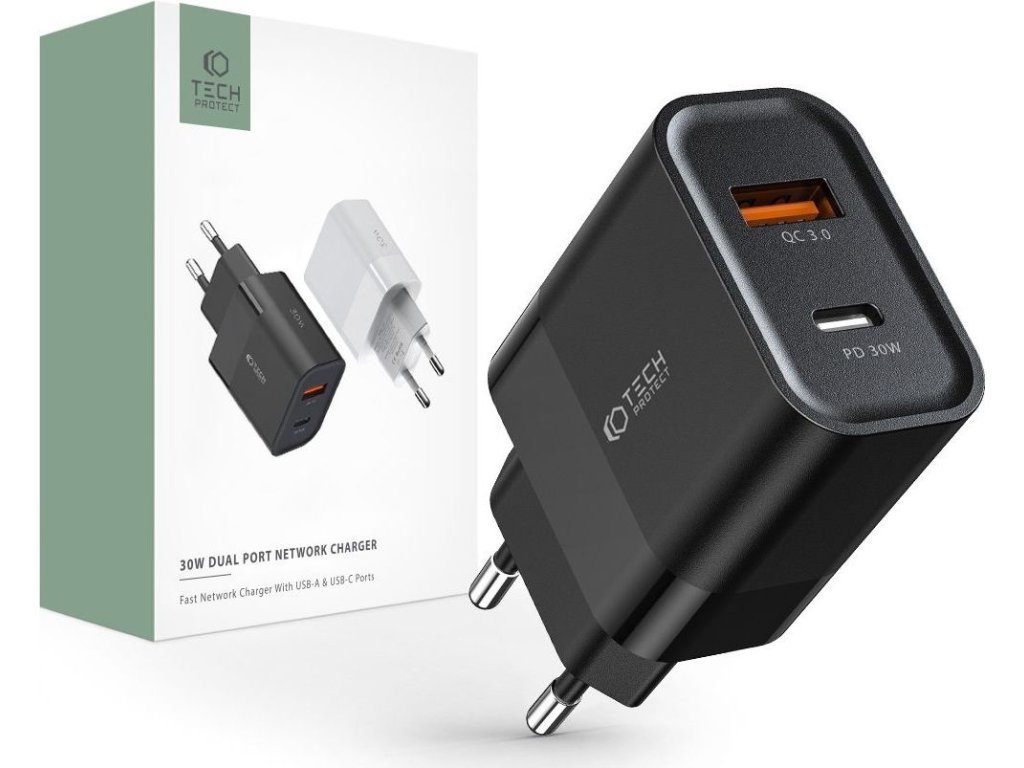 Rychlá nabíječka do sítě - Tech-Protect, PD30W/QC3.0 Black
