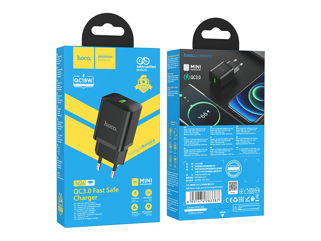 Rychlá USB-A nabíječka do sítě Hoco N26 skrývá v malém těle vysoký nabíjecí výkon. Rychle tak nabijete svůj telefon nebo tablet a vejde se do každé kapsy pro komfortnější cestování.