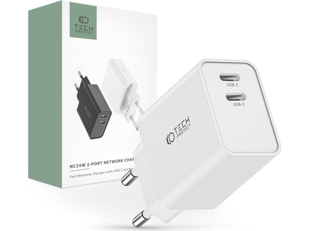 Rychlá USB-C nabíječka do sítě - Tech-Protect, C35W PD35W White - ROZBALENO