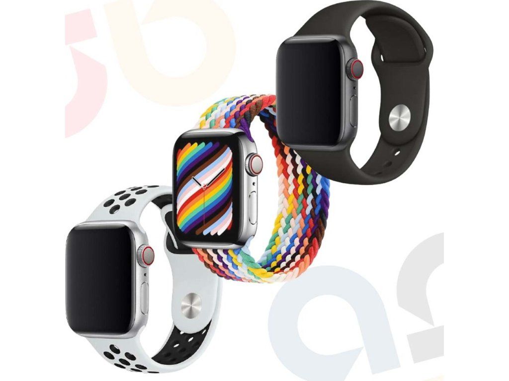 Sportovní řemínek v bílo-černé kombinaci je ideální pro aktivní životní styl. Pletený navlékací řemínek v duhových barvách přináší osvěžující vzhled, zatímco jednobarevný černý řemínek je elegantní volbou pro každodenní nošení.