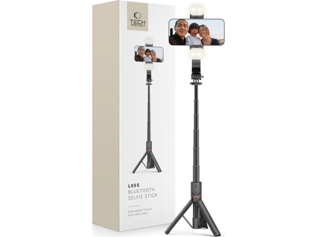 Selfie tyč s Bluetooth ovladačem a stojánkem Tech-Protect L05S je multifunkčním pomocníkem na cestách při focení. Dokáže skvěle zachytit vaše autoportréty, poslouží jako stativ, osvítí snímanou scénu a dokáže fotografovat i vzdáleně.