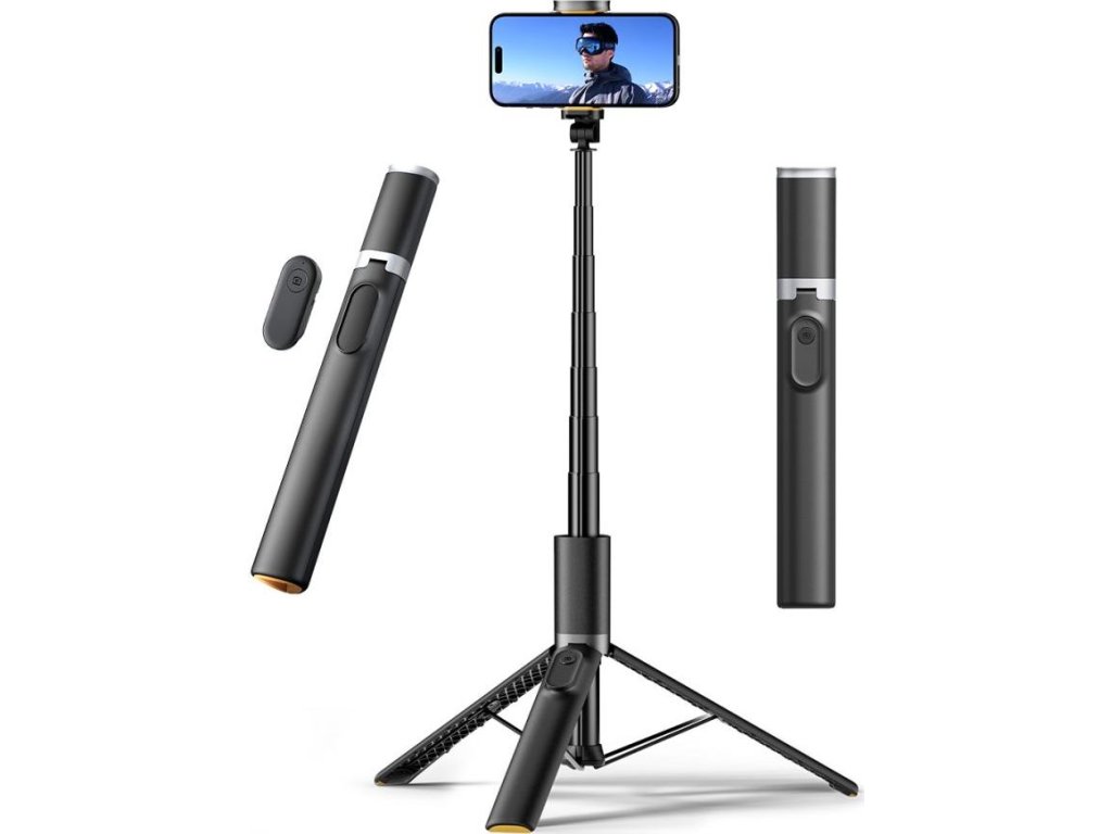 Selfie s teleskopickou tyčí umožňuje její prodloužení na délku 141 cm. Díky tomu můžete snadno pořizovat širokoúhlé záběry nebo fotografovat skupinu přátel. Stabilní nohy stativu umožňují snadné přizpůsobení různým povrchům a poskytují pevnou oporu vašemu zařízení.