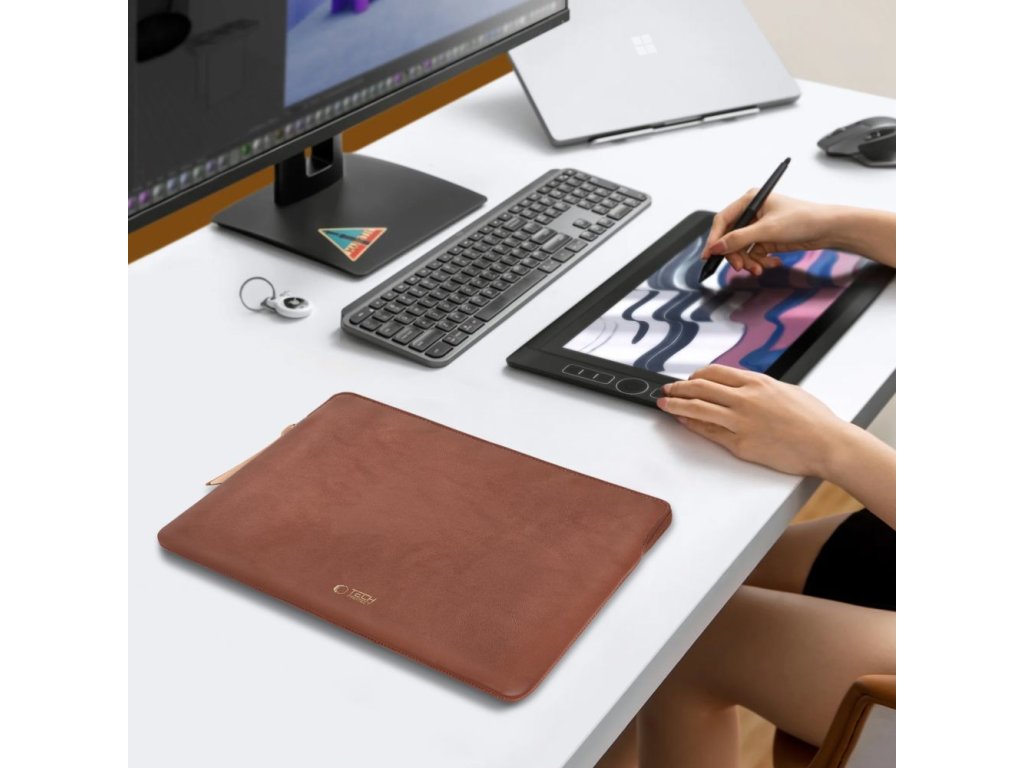 Pouzdro na notebook Tech-Protect, určené pro velikosti 15-16 palců, je vyrobeno z jemného fleece materiálu v odstínu Brown, který poskytuje spolehlivou ochranu před poškrábáním a nárazy. Díky tenkému a lehkému designu je pohodlné na přenášení a zároveň vypadá stylově. Pouzdro má pevné švy a kvalitní zip, což zaručuje dlouhou životnost a bezpečí vašeho zařízení. Ideální volba pro každodenní použití, kombinující ochranu a eleganci.