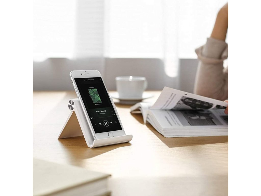 Držák telefonu je velmi univerzální. Můžete tak do něj vložit malý iPhone 5 s 4 palcovou obrazovkou i iPad mini, který disponuje 7,9 palcovým displejem. Obě zařízení se v něm budou cítit stejně dobře a stojánek bude stejně stabilní a pevný.
