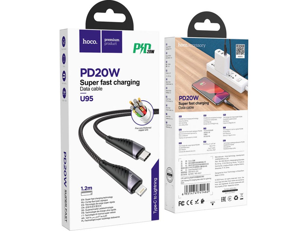 Rychlý datový kabel USB-C/Lightning Hoco U95 je skvělým řešením pro nabíjení a přenos dat z iPhonu nebo iPadu. Kabel podporuje nabíjecí výkon až 20 W, má měděné vodiče a vnější opletení z tkaného nylonu.