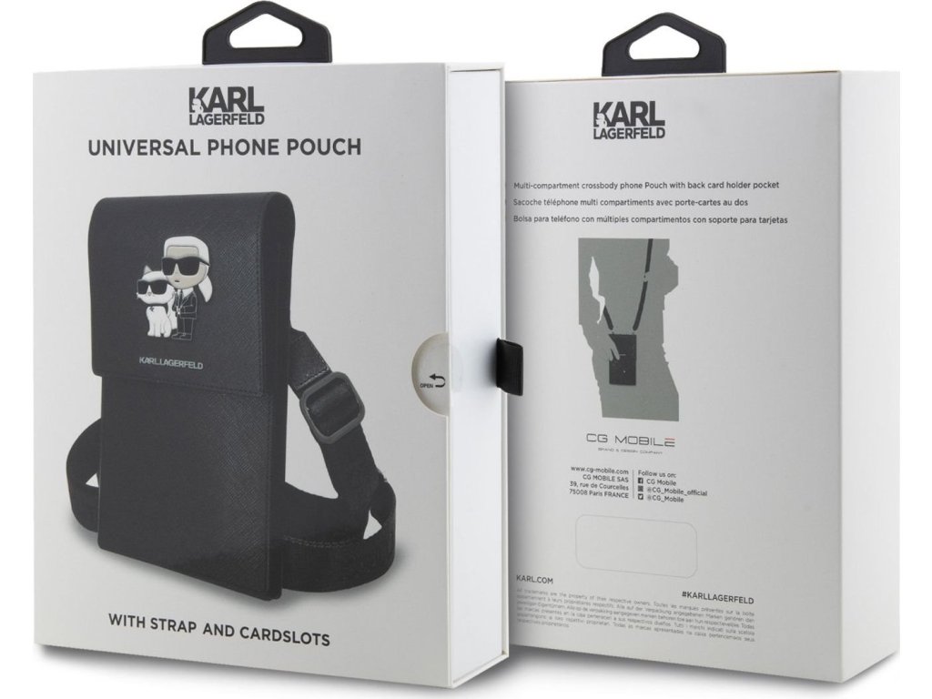 Univerzální pouzdro / taška s kapsou na mobil - Karl Lagerfeld, Metal Logo NFT Wallet Black KLWBSAKCPMK