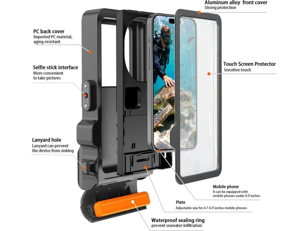 Univerzální voděodolné pouzdro Tech-Protect IPX8 Pro Diving je určeno pro všechny aktivní uživatele, kteří se věnují extrémním sportům, jako je potápění, surfování, horolezectví nebo lyžování. Je vhodné pro všechny chytré telefony o velikosti 4,7-6,9 palce.