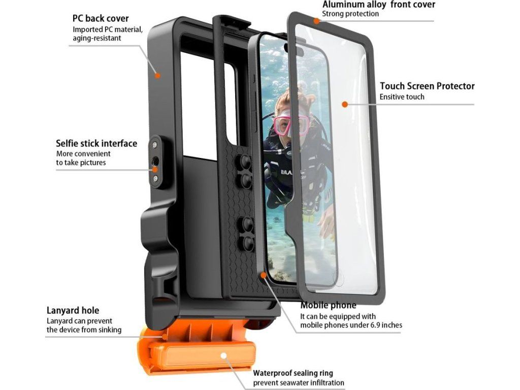 Univerzální voděodolné pouzdro - Tech-Protect, IPX8 Pro Diving Waterproof Case Orange