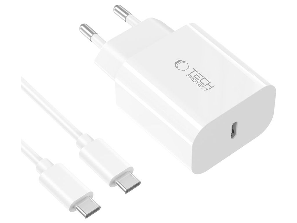 USB-C nabíječka do sítě - Tech-Protect, NC20W + USB-C kabel