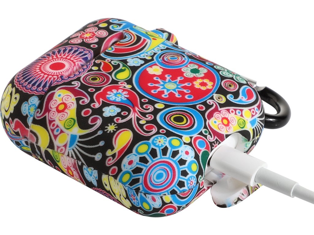 Vzorovaný obal s karabinou pro AirPods 1/2. Materiál je silikon.