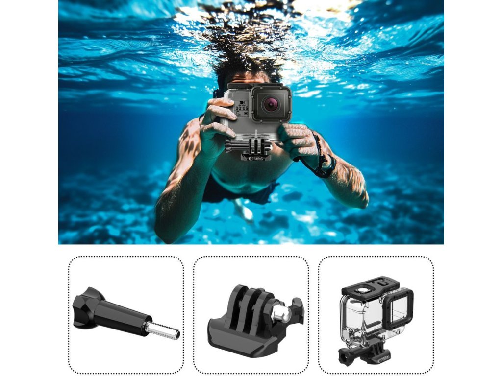 To jedyne etui, którego będziesz potrzebować podczas ekstremalnych podróży – niezależnie od tego, czy nurkujesz, surfujesz, czy eksplorujesz górskie szlaki. W zestawie znajdziesz również adapter montażowy i śrubę mocującą, dzięki którym bezpiecznie przymocujesz kamerę.